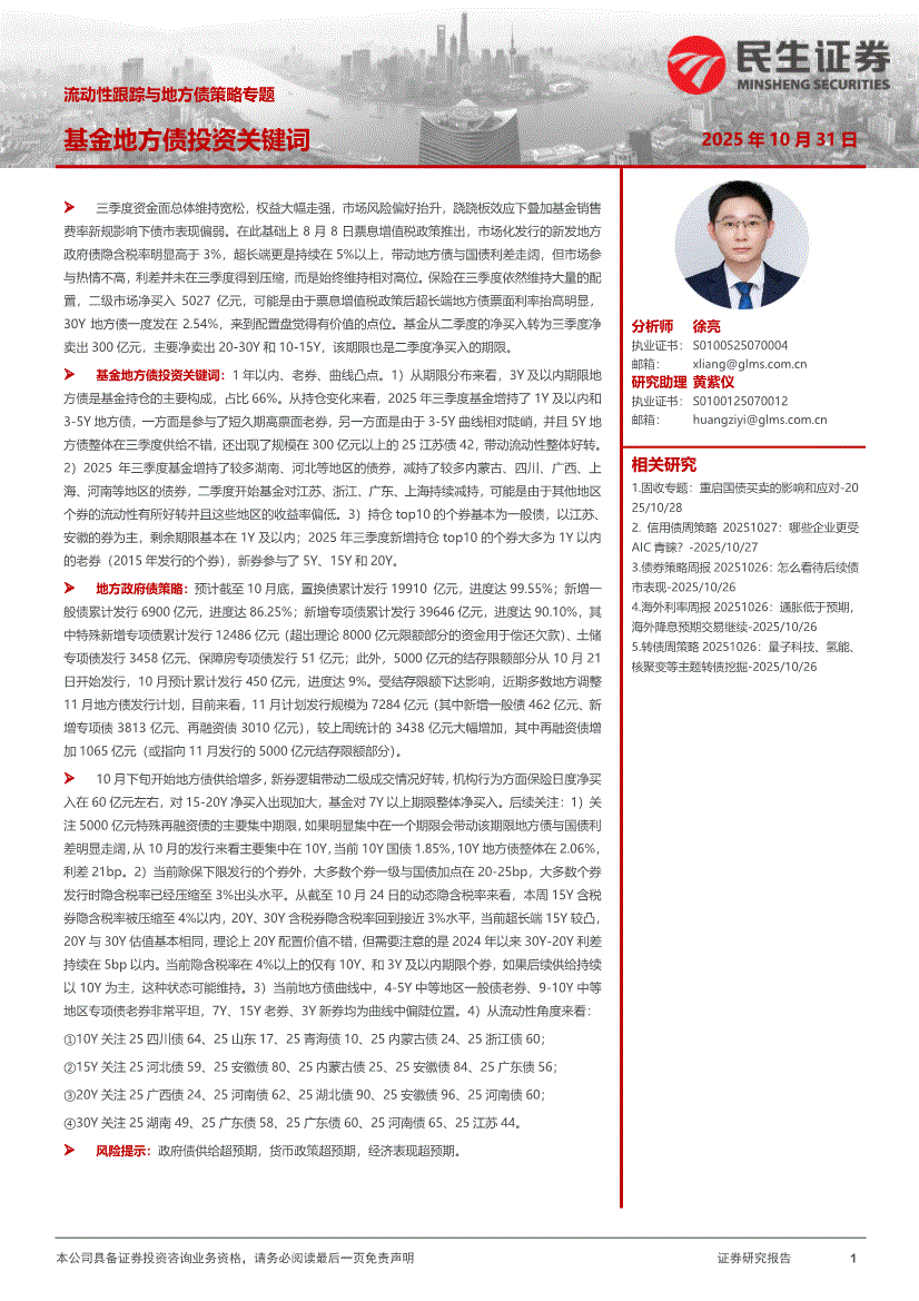 民生证券-流动性跟踪与地方债策略专题:基金地方债投资关键词-251031