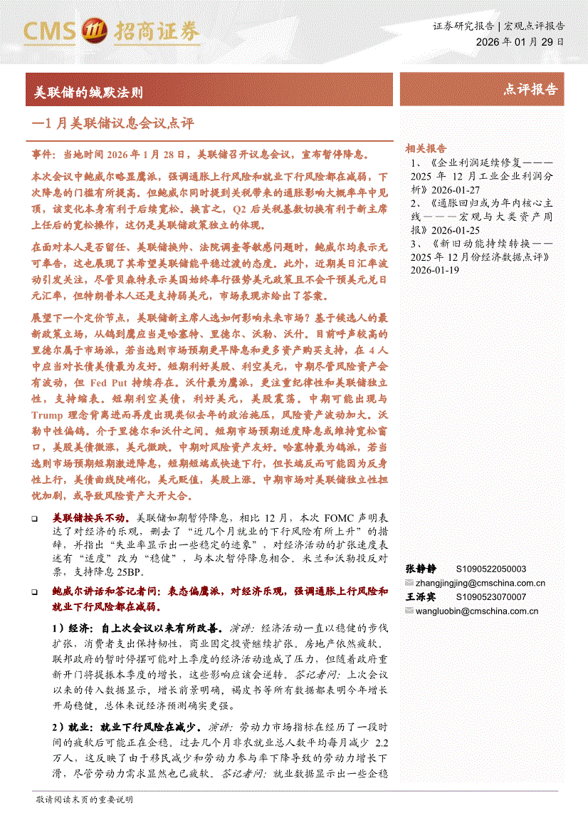 招商证券-1月美联储议息会议点评:美联储的缄默法则-260129