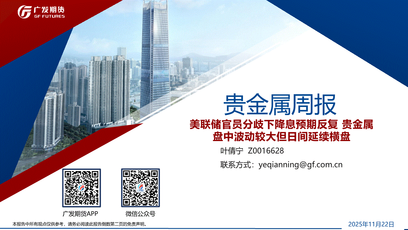广发期货-贵金属周报:美联储官员分歧下降息预期反复,贵金属盘中波动较大但日间延续横盘-251122