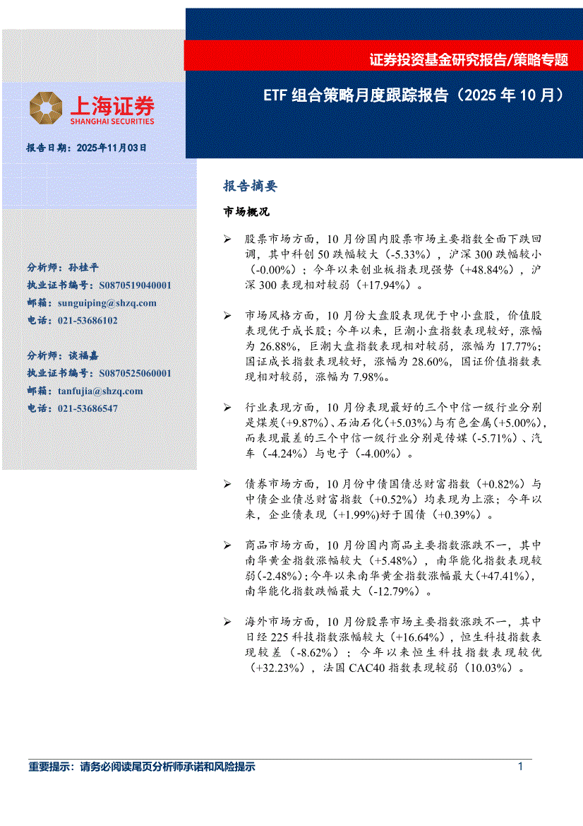 上海证券-ETF组合策略月度跟踪报告(2025年10月)-251103