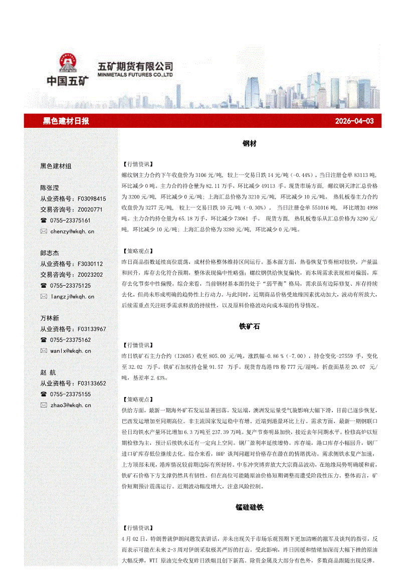 五矿期货-黑色建材日报-260402