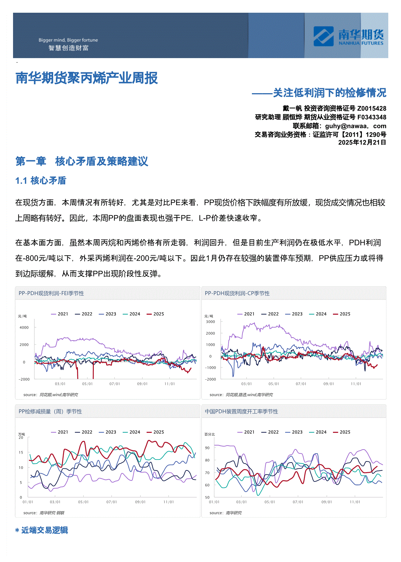 南华期货-聚丙烯产业周报:关注低利润下的检修情况-251221