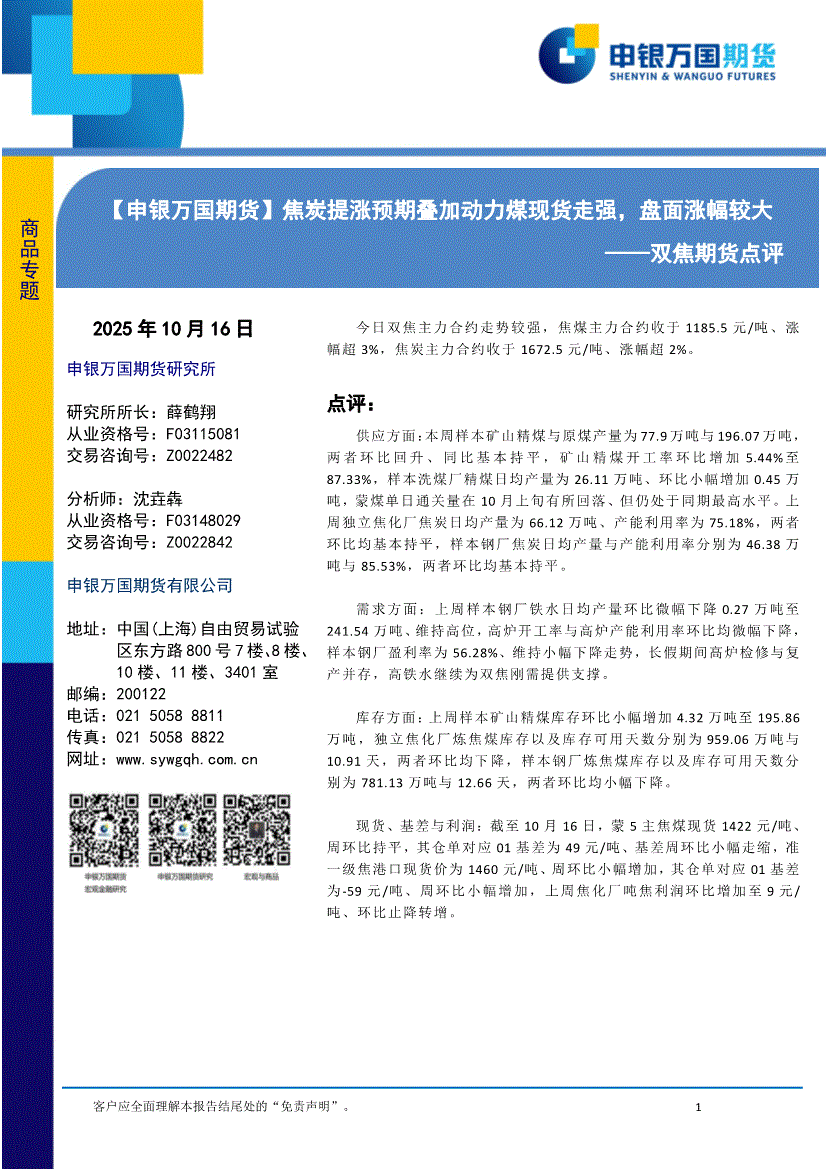 申银万国期货-双焦期货点评:焦炭提涨预期叠加动力煤现货走强,盘面涨幅较大-251016