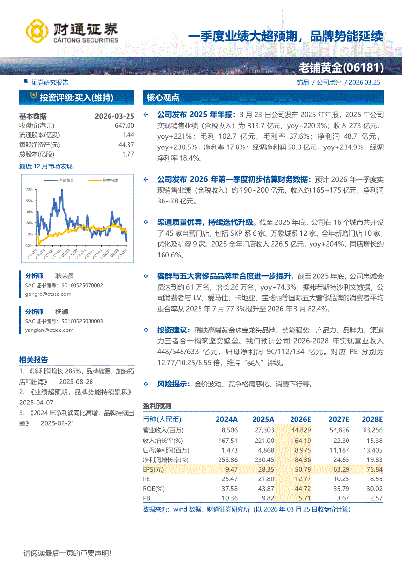 老铺黄金:财通证券-老铺黄金-6181.HK-一季度业绩大超预期,品牌势能延续-260325