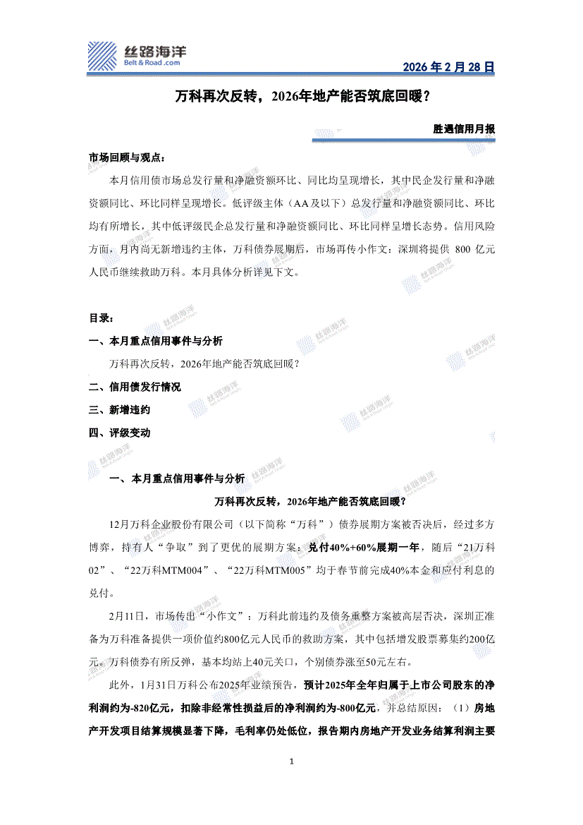丝路海洋-胜遇信用月报:万科再次反转,2026年地产能否筑底回暖?-260228