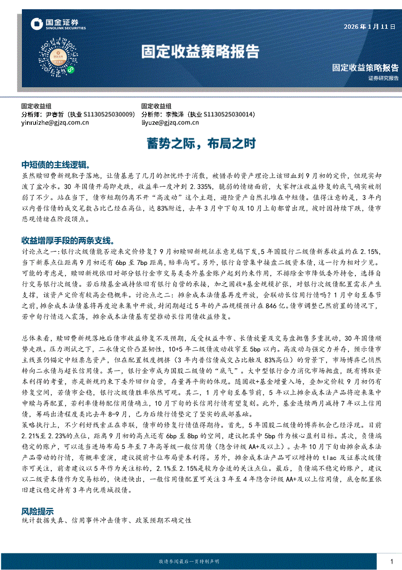 国金证券-固定收益策略报告:蓄势之际,布局之时-260111