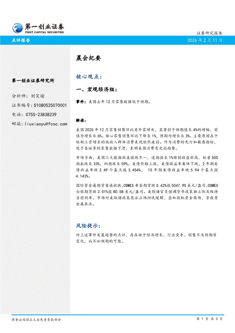 第一创业-晨会纪要-260211