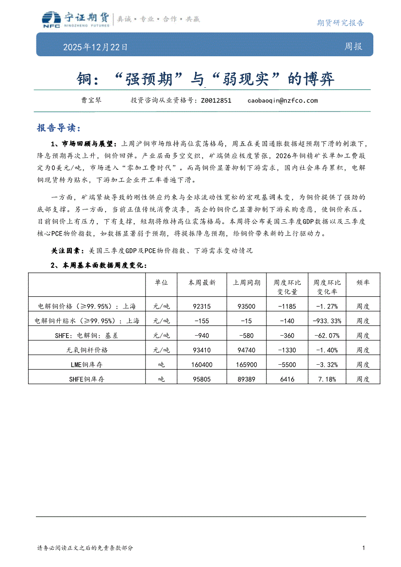 宁证期货-铜:“强预期”与“弱现实”的博弈-251222