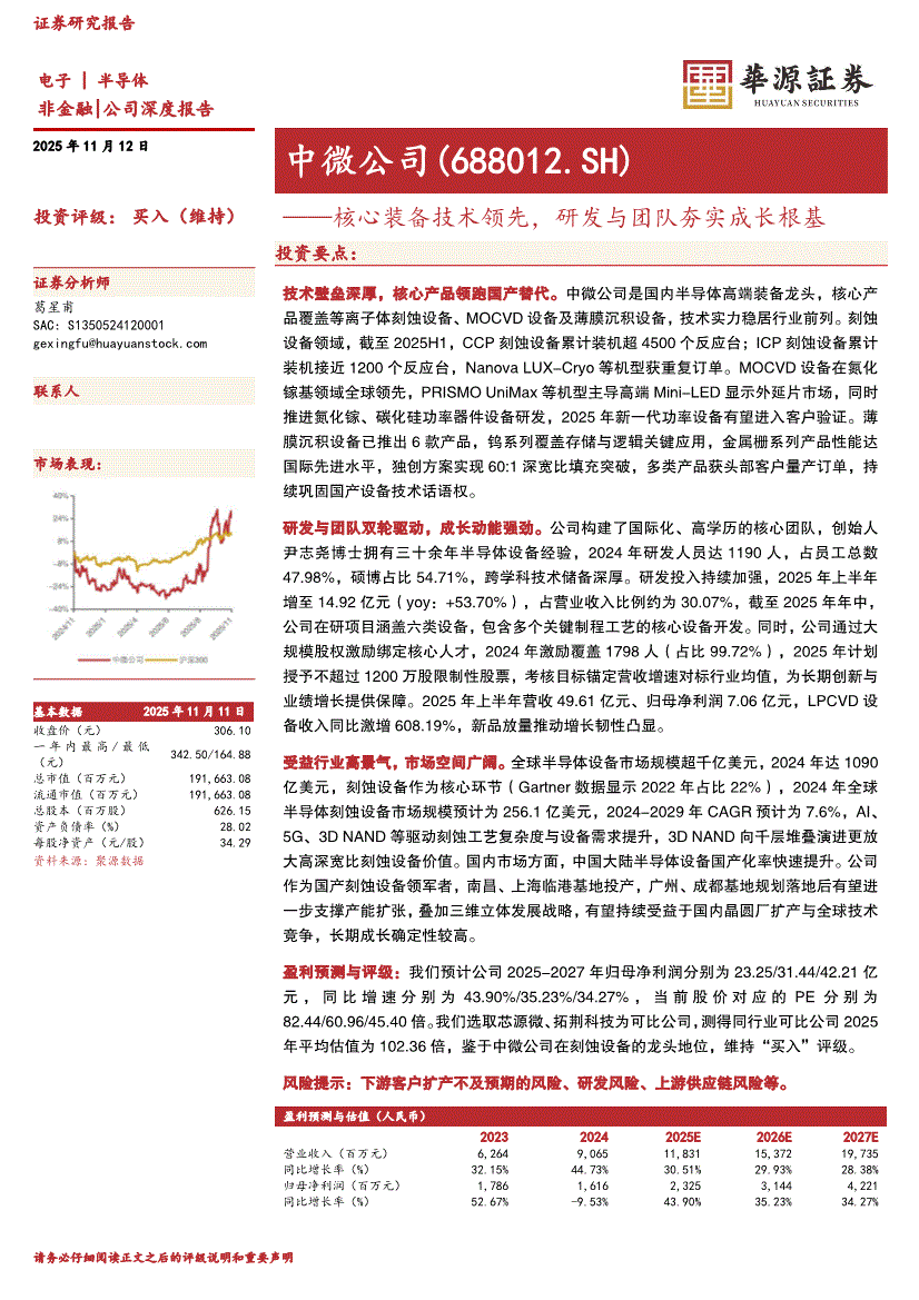 中微公司:华源证券-中微公司-688012-核心装备技术领先,研发与团队夯实成长根基-251112