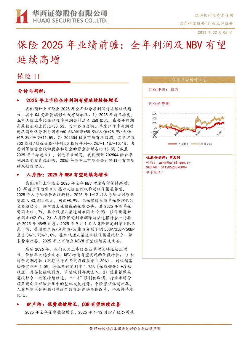 保险行业:华西证券-保险行业2025年业绩前瞻:全年利润及NBV有望延续高增-260205