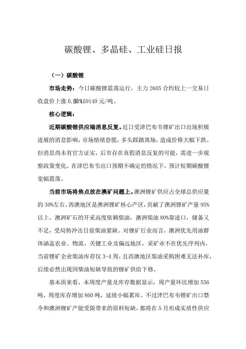 天富期货-碳酸锂、多晶硅、工业硅日报-260402