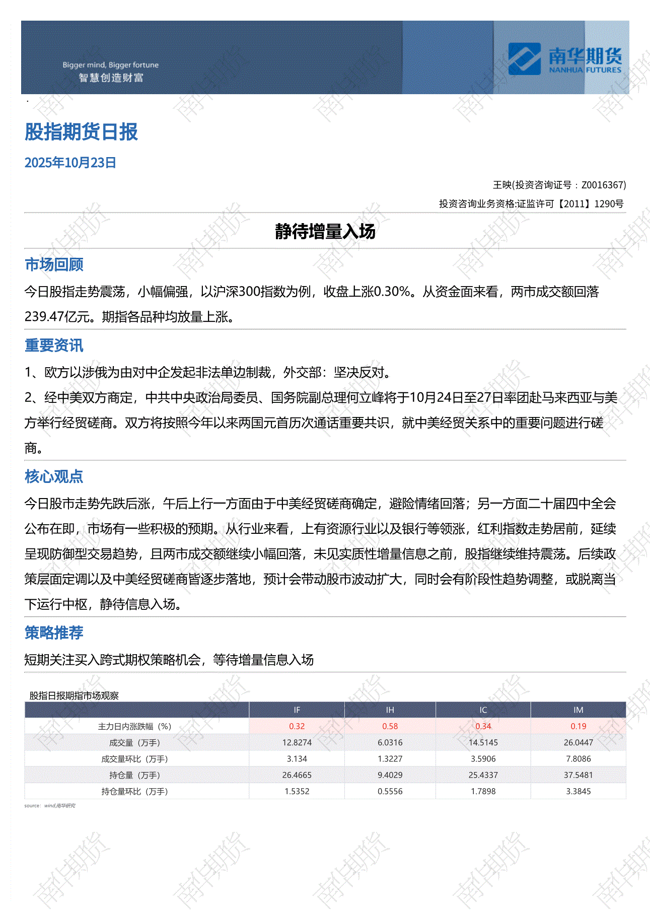 南华期货-股指期货日报:缩量观望,关注二十届四中全会内容-251022