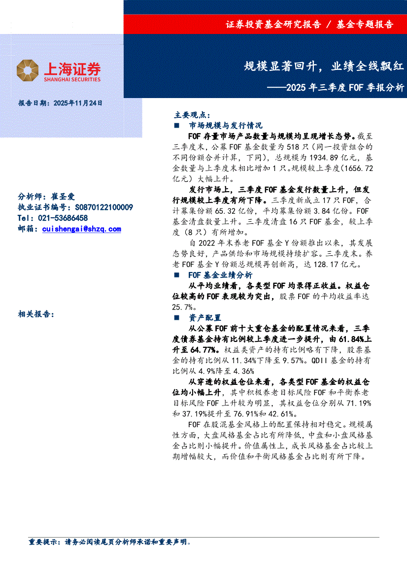 上海证券-2025年三季度FOF季报分析:规模显著回升,业绩全线飘红-251124