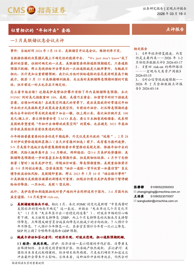 招商证券-3月美联储议息会议点评:似曾相识的“年初冲击”套路-260319