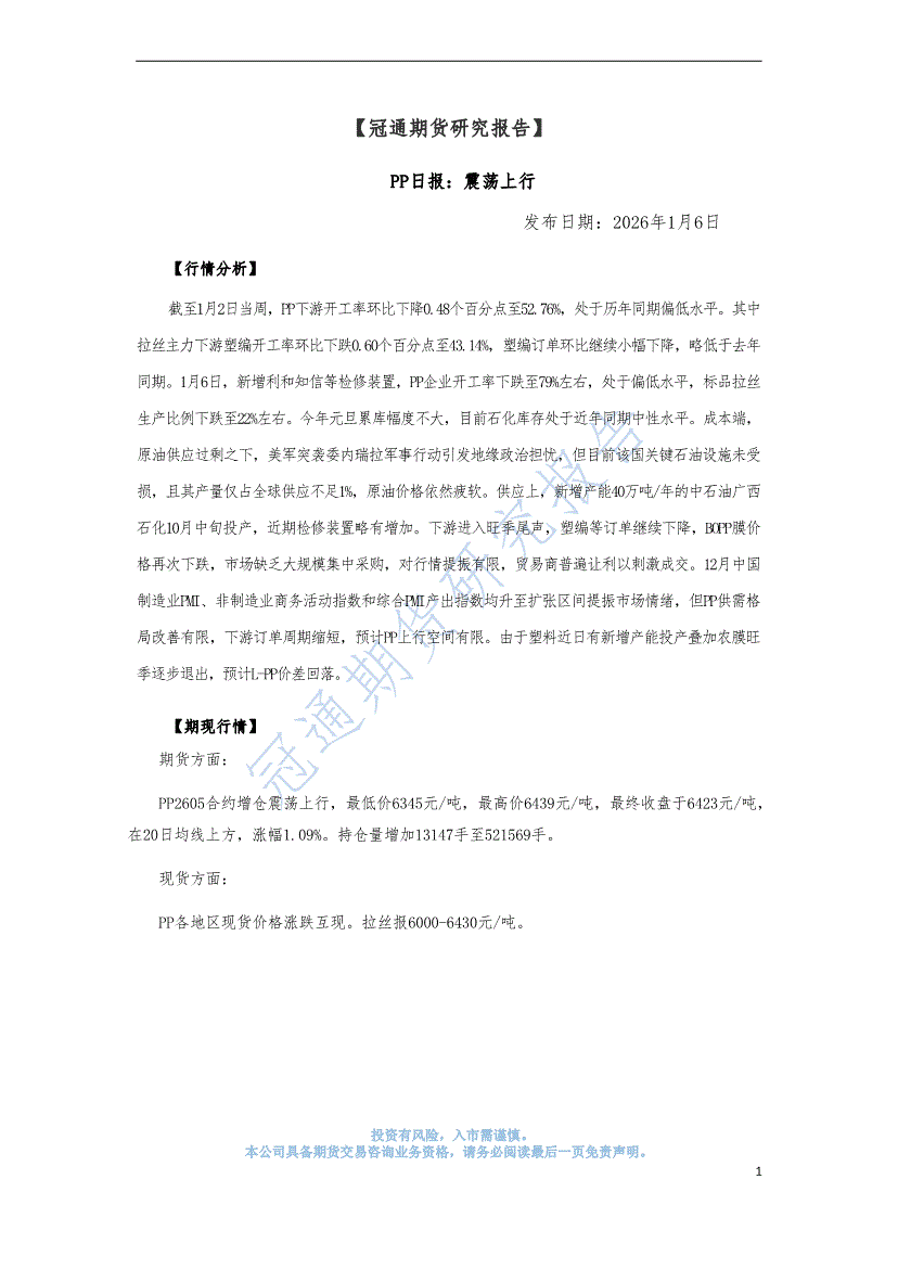 冠通期货-PP日报:震荡上行-260106