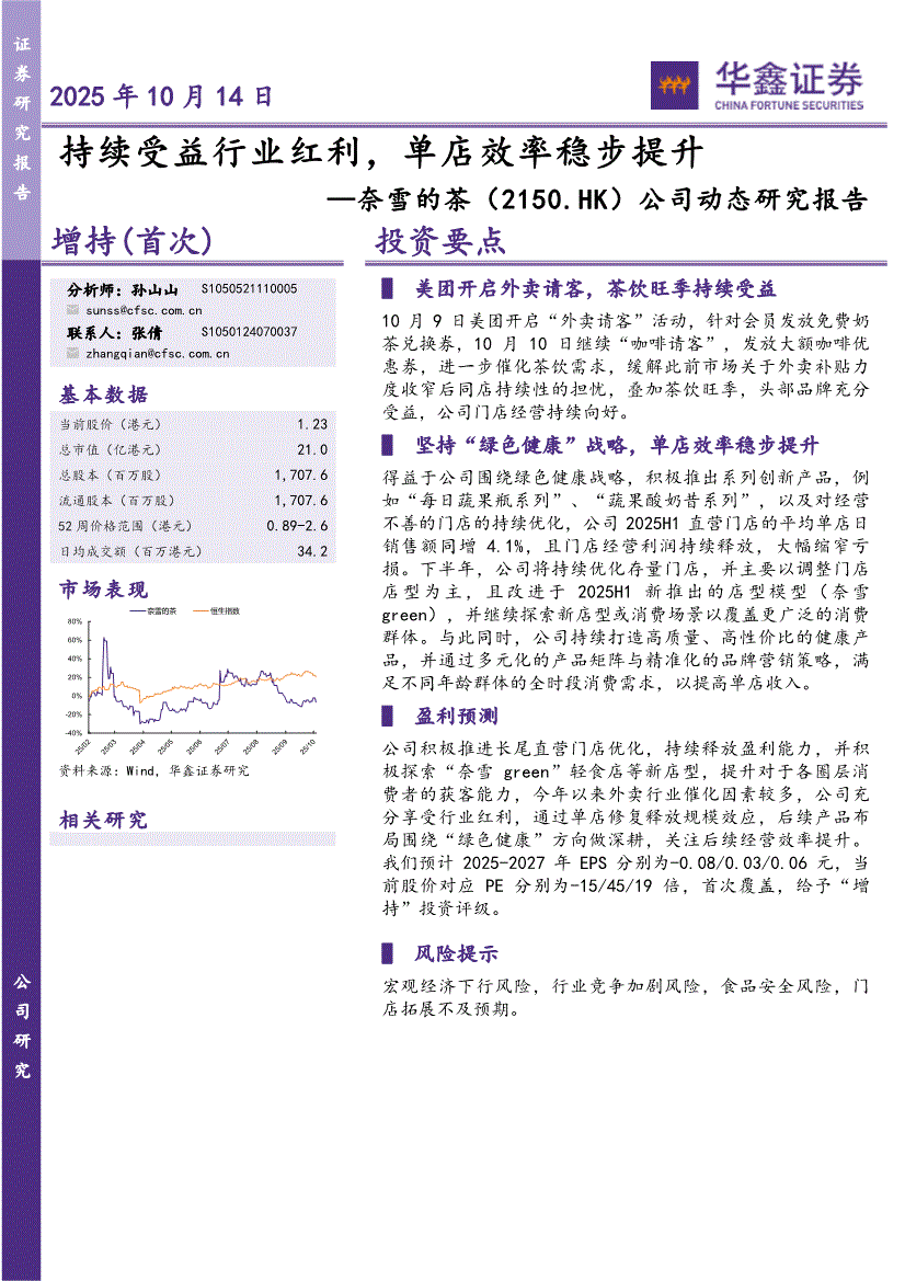 奈雪的茶:华鑫证券-奈雪的茶-2150.HK-公司动态研究报告:持续受益行业红利,单店效率稳步提升-251014