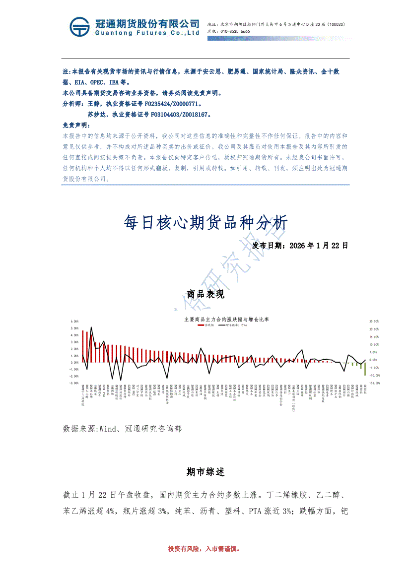 冠通期货-每日核心期货品种分析-260122