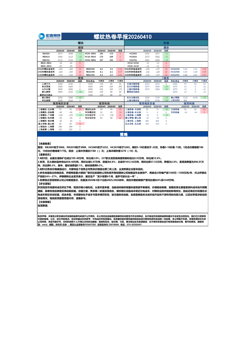 宏源期货-黑色金属月报~钢材:成本中枢抬升,供需同步改善-260407