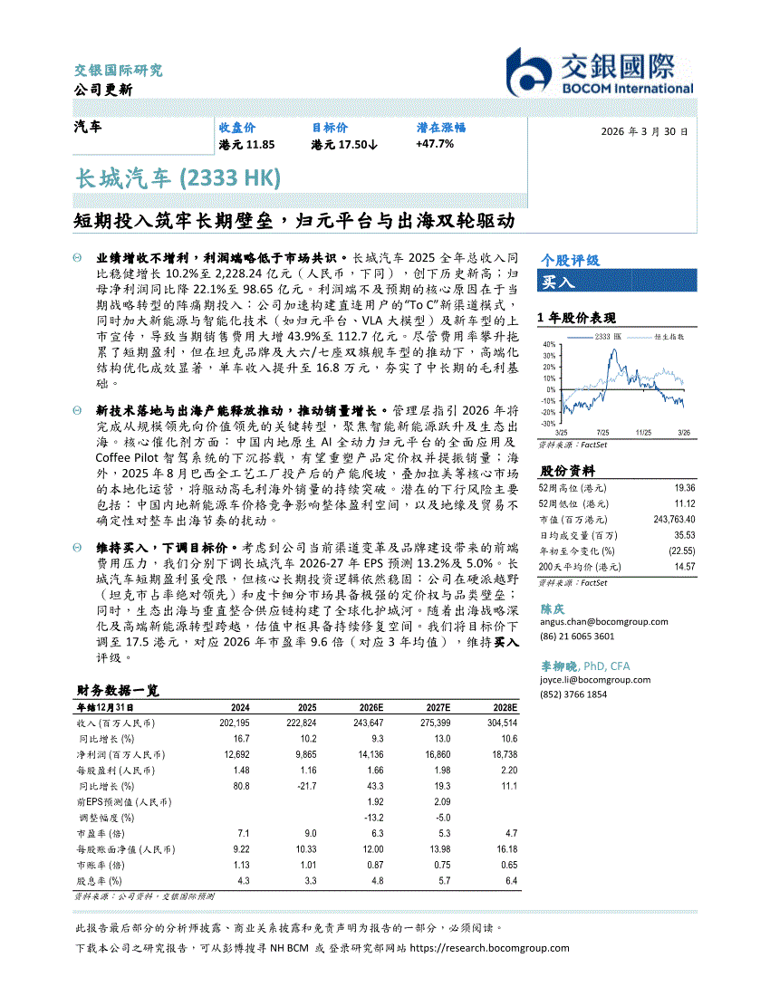 长城汽车:交银国际-长城汽车-2333.HK-短期投入筑牢长期壁垒,归元平台与出海双轮驱动-260330