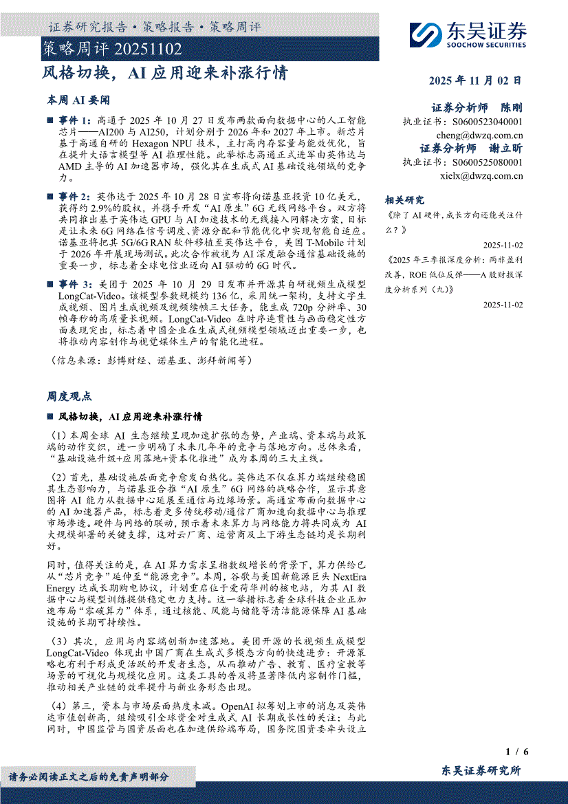东吴证券-策略周评:风格切换,AI应用迎来补涨行情-251102