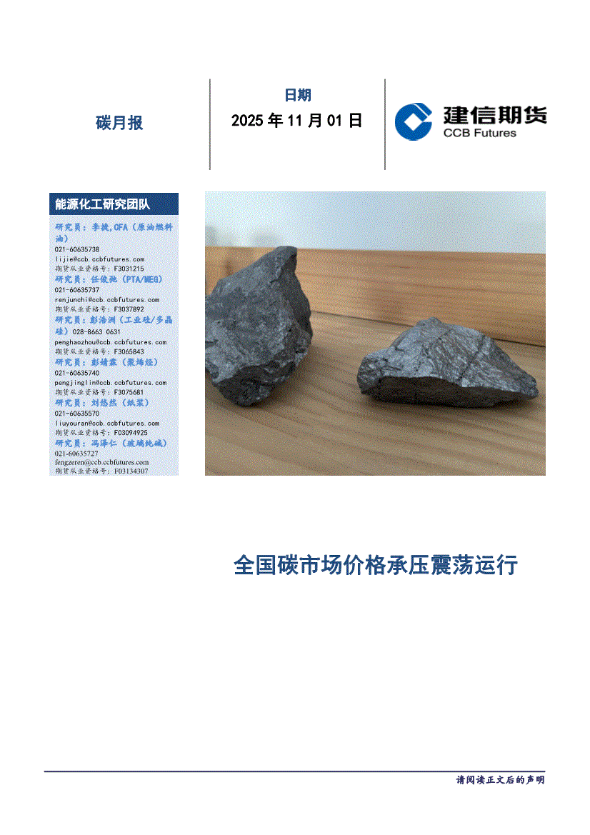 建信期货-碳月报:全国碳市场价格承压震荡运行-251101