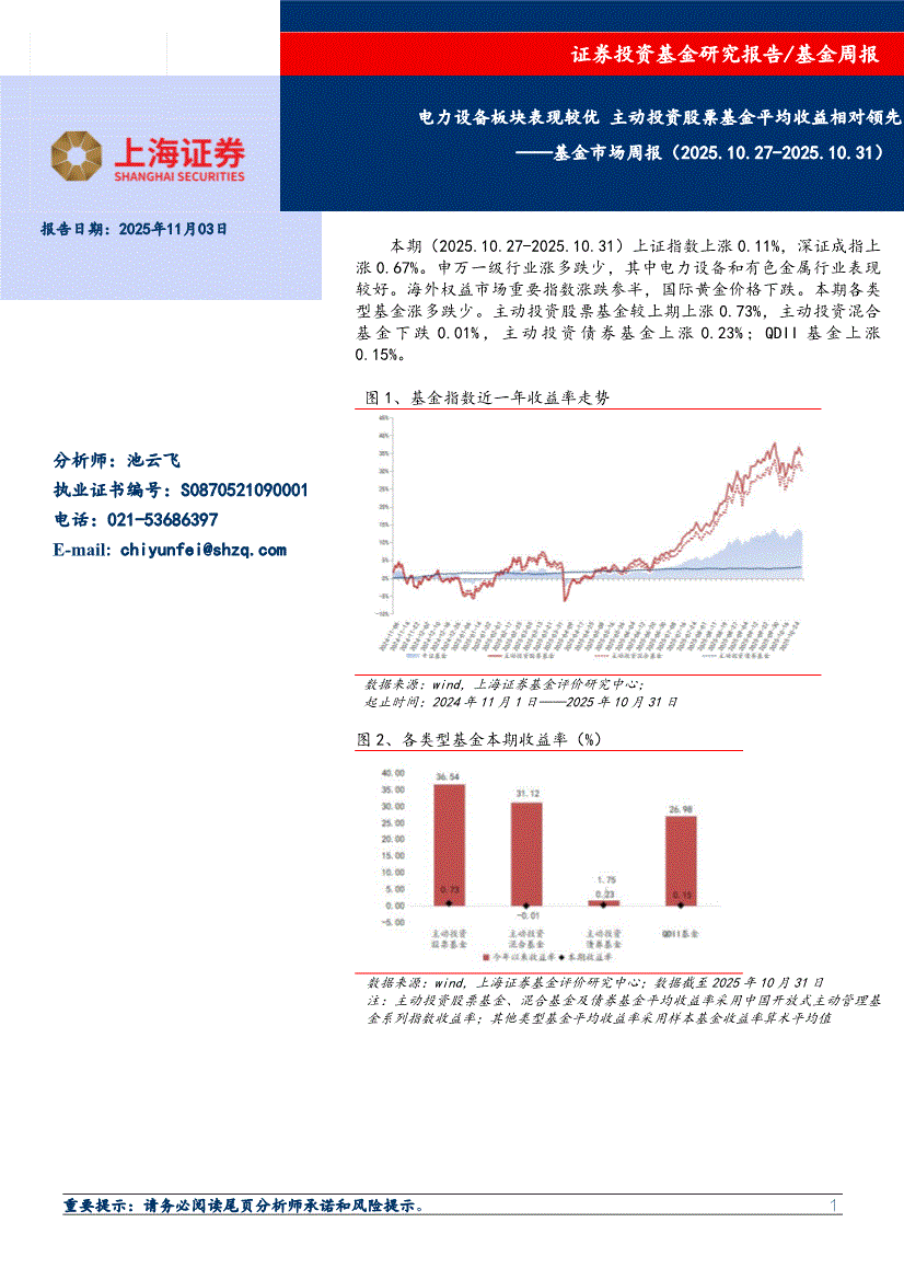 上海证券-基金市场周报:电力设备板块表现较优,主动投资股票基金平均收益相对领先-251103