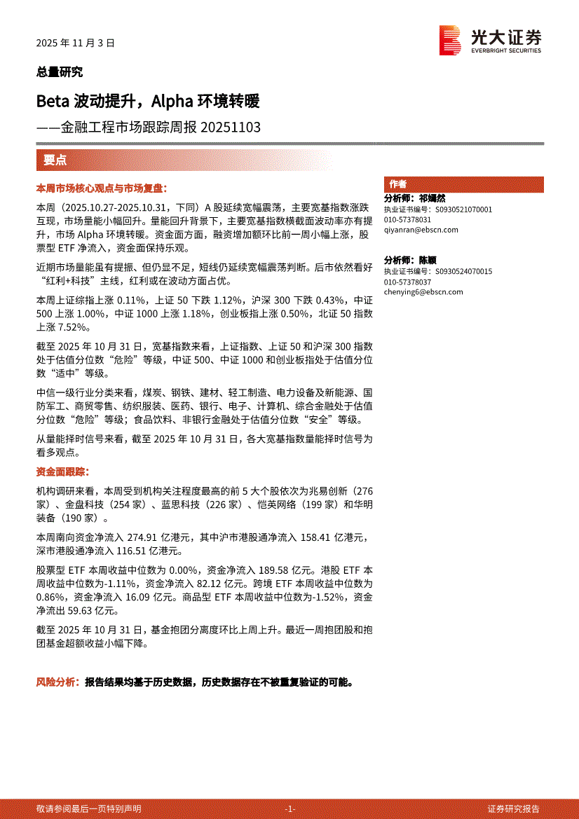 光大证券-金融工程市场跟踪周报:Beta波动提升,Alpha环境转暖-251103