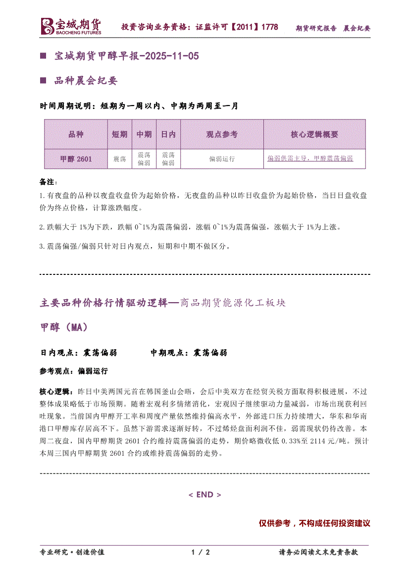 宝城期货-甲醇周报:产业因子主导,甲醇偏弱运行-251103