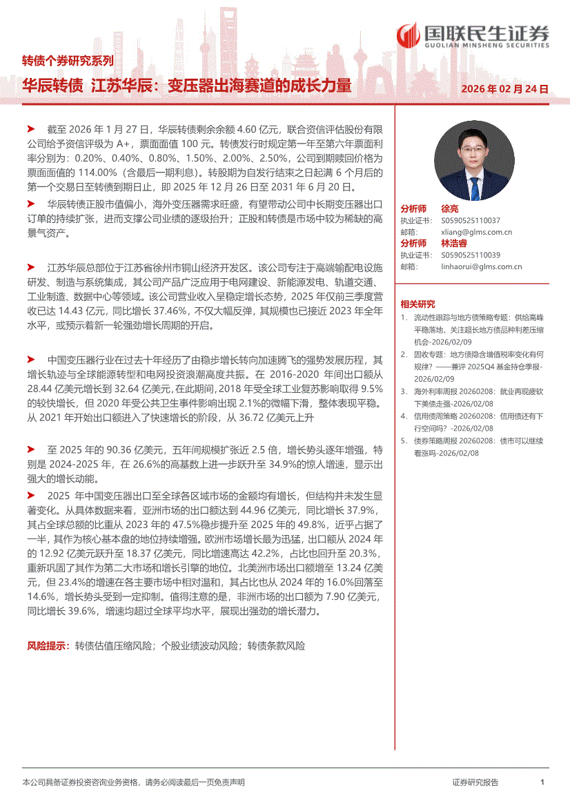国联民生证券-转债个券研究系列:华辰转债,江苏华辰,变压器出海赛道的成长力量-260224