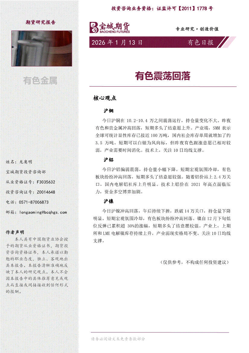 宝城期货-铜铝周报:铜铝多空博弈加剧-260112