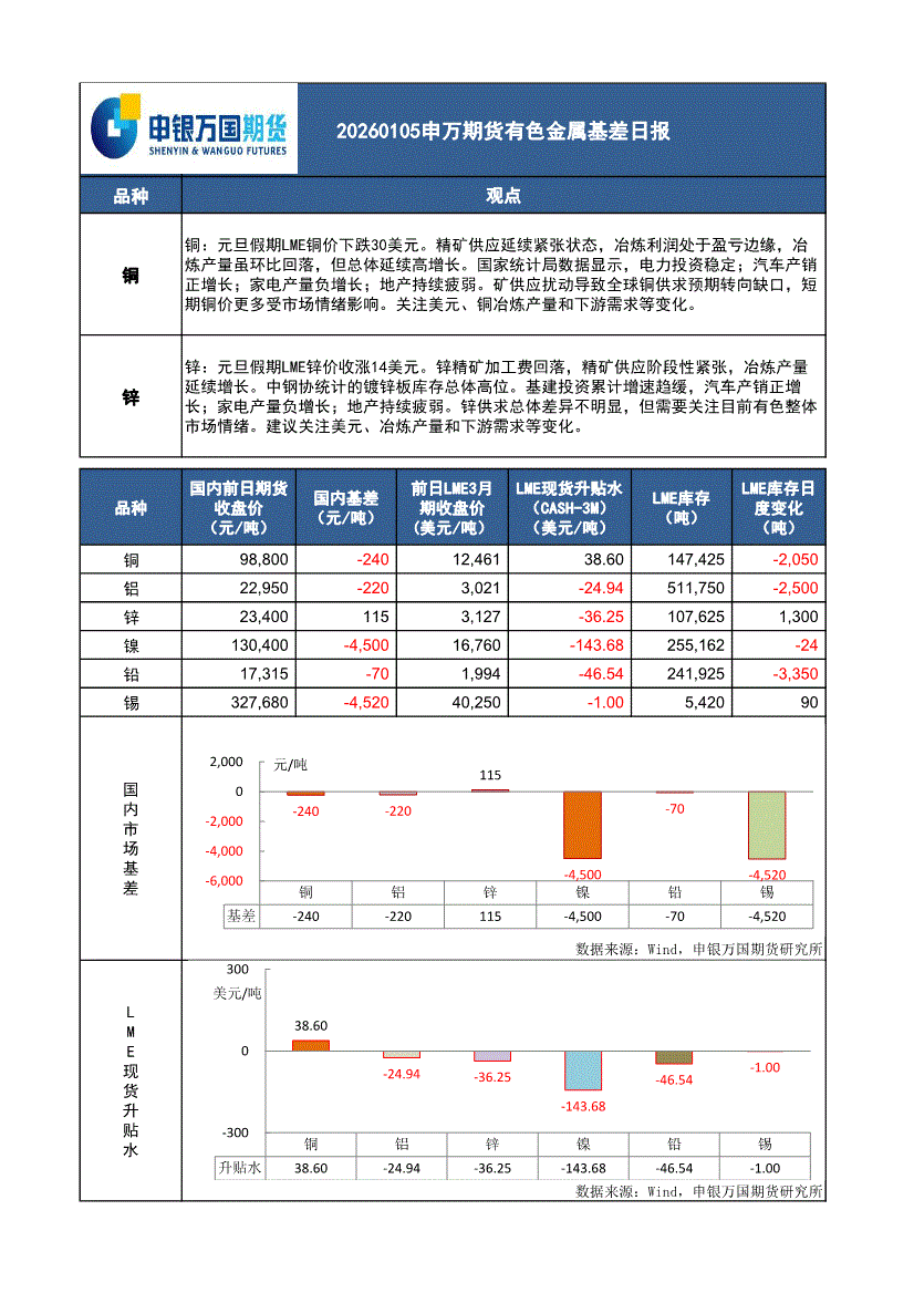 申银万国期货-有色金属基差日报-260105