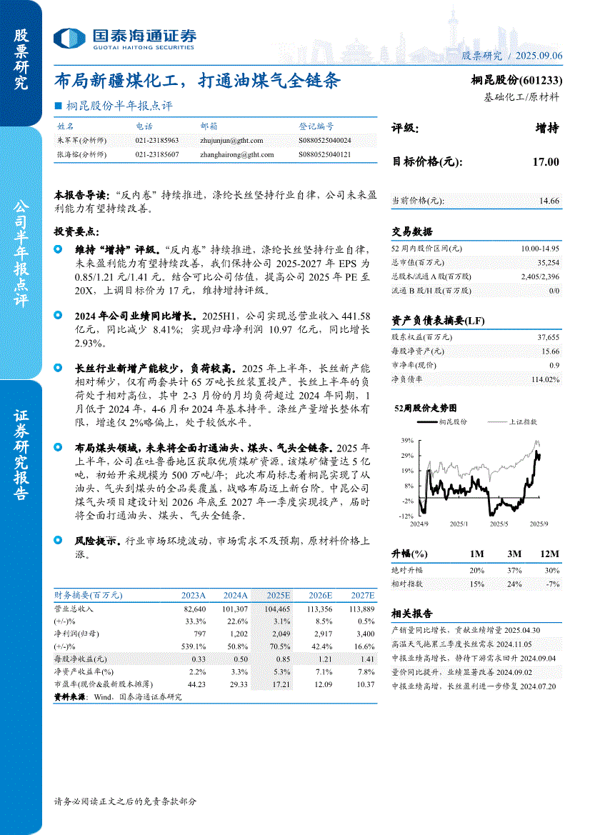 桐昆股份:国泰海通证券-桐昆股份-601233-半年报点评:布局新疆煤化工,打通油煤气全链条-250906