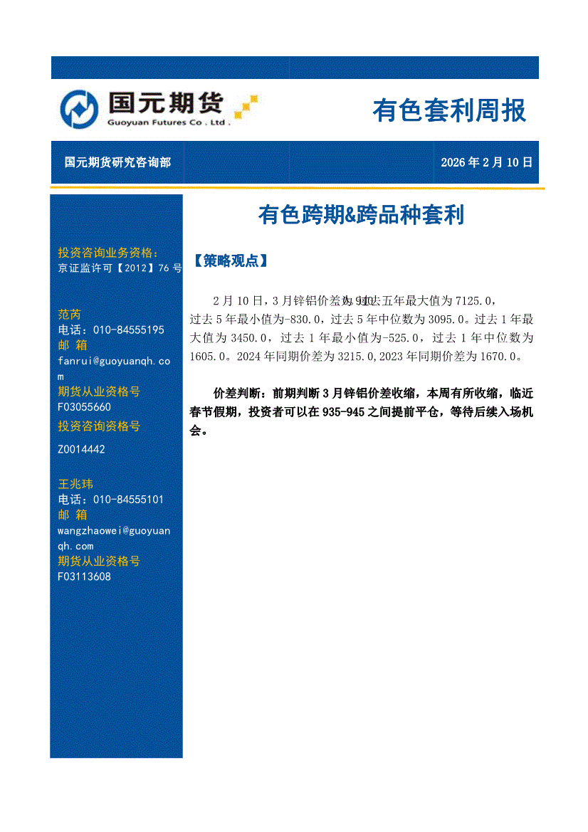 国元期货-有色套利周报:有色跨期&跨品种套利-260210