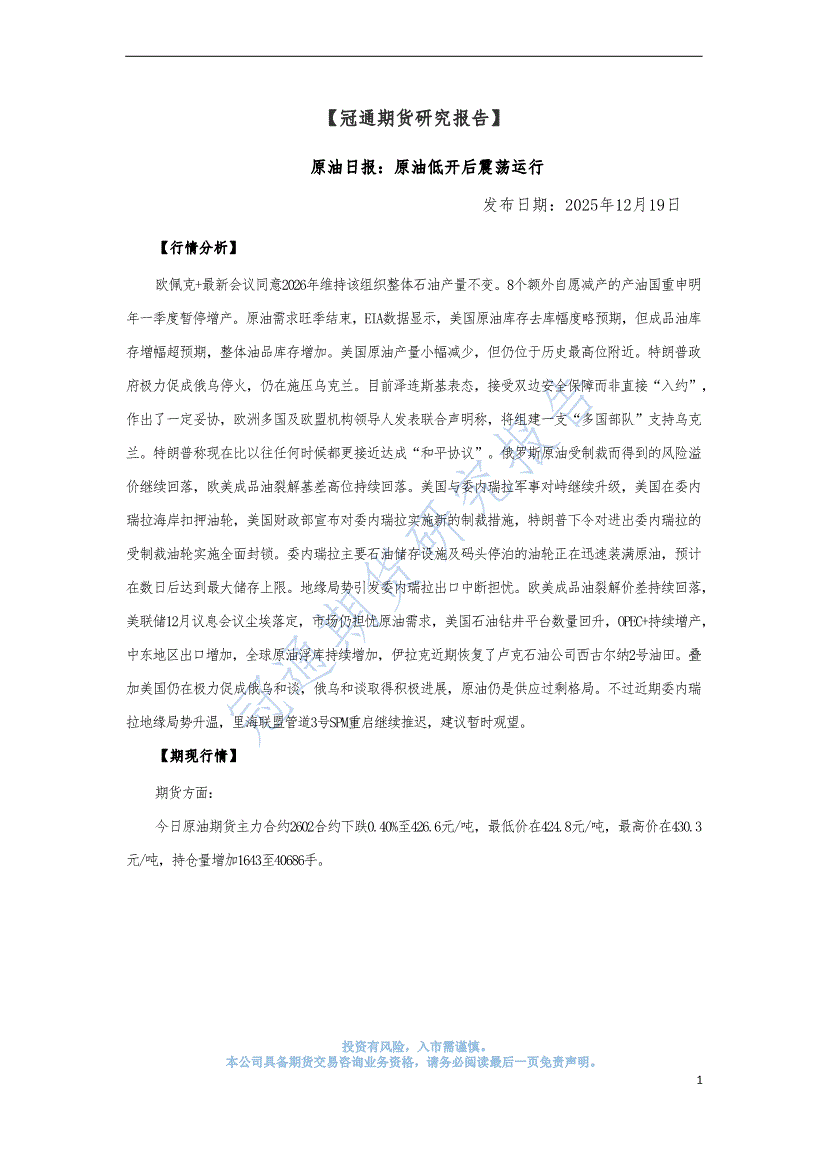 冠通期货-原油日报:原油低开后震荡运行-251219