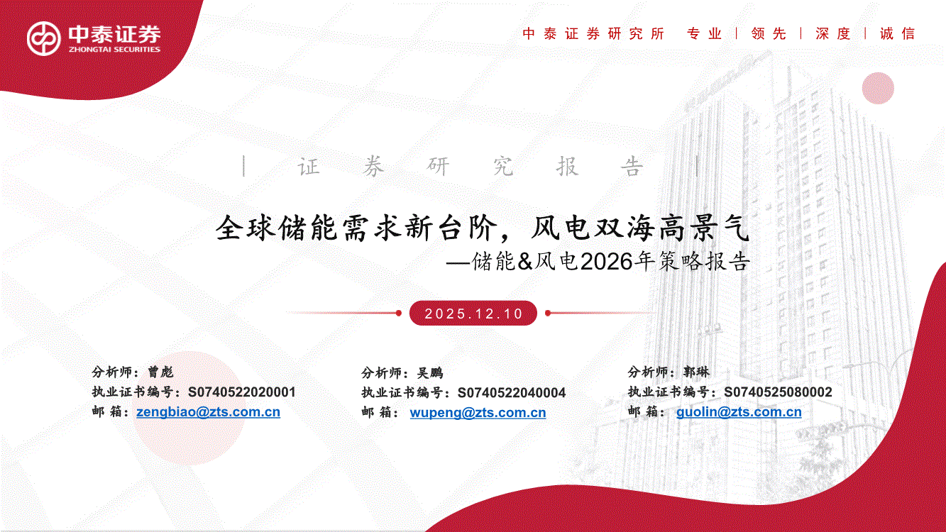 储能&风电行业:中泰证券-储能&风电行业2026年策略报告:全球储能需求新台阶,风电双海高景气-251210