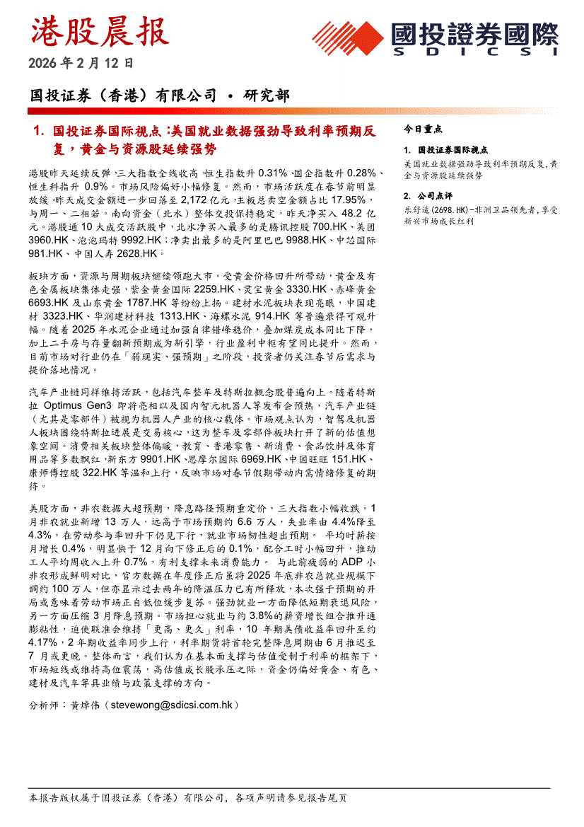 国投证券国际-港股晨报-260212