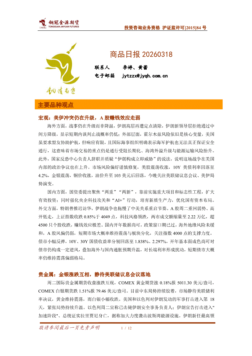 铜冠金源期货-商品日报-260318