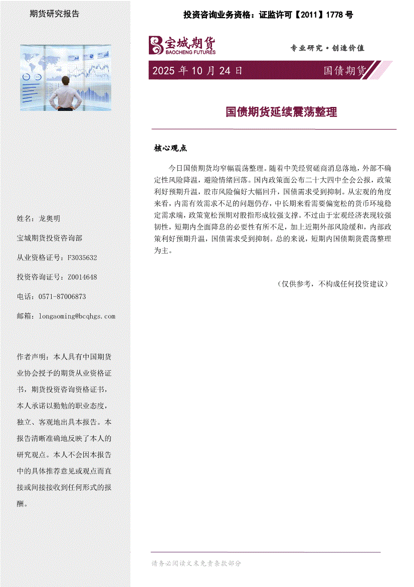 宝城期货-国债期货日报:国债期货延续震荡整理-251024