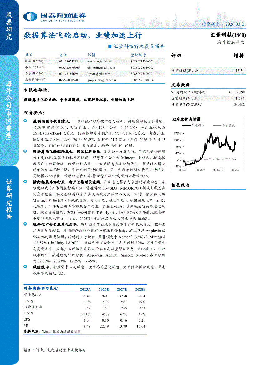 汇量科技:国泰海通证券-汇量科技-1860.HK-首次覆盖报告:数据算法飞轮启动,业绩加速上行-260321