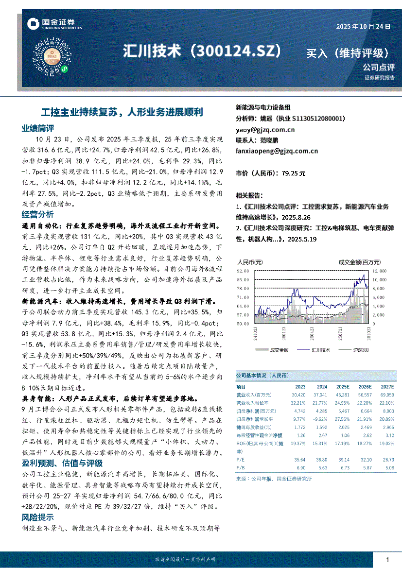 汇川技术:国金证券-汇川技术-300124-工控主业持续复苏,人形业务进展顺利-251024