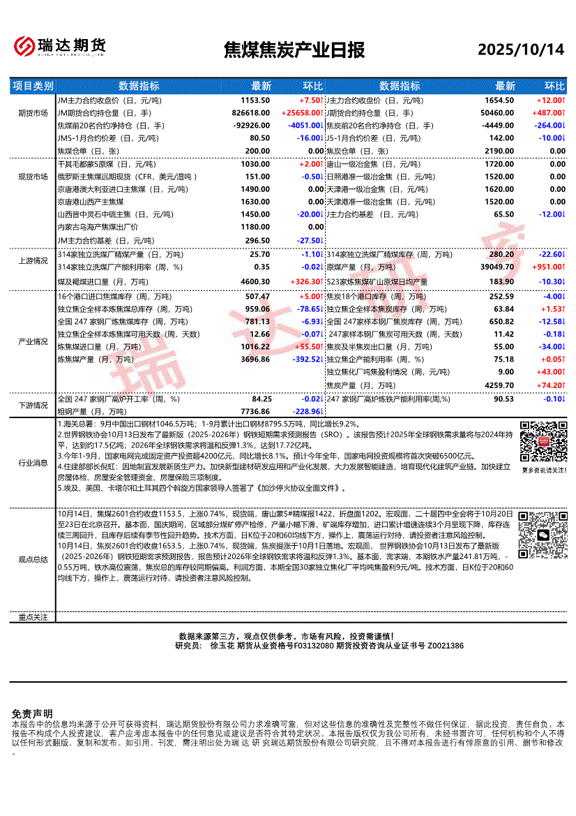 瑞达期货-焦炭市场周报:钢材累库需求偏弱,焦炭一轮提涨落地-251010