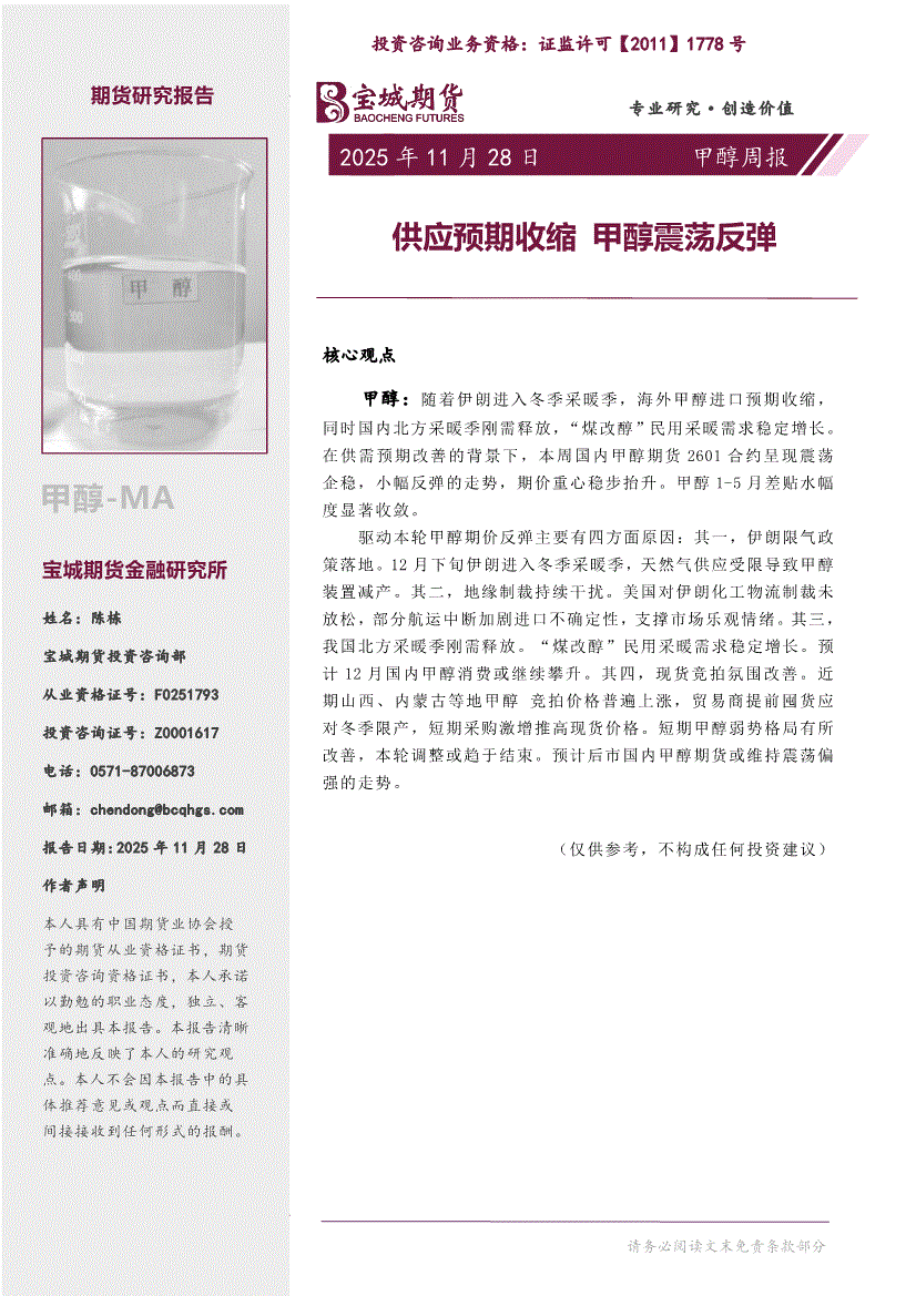 宝城期货-甲醇专题报告:供应收缩周期到来,甲醇估值迎来修复-251202