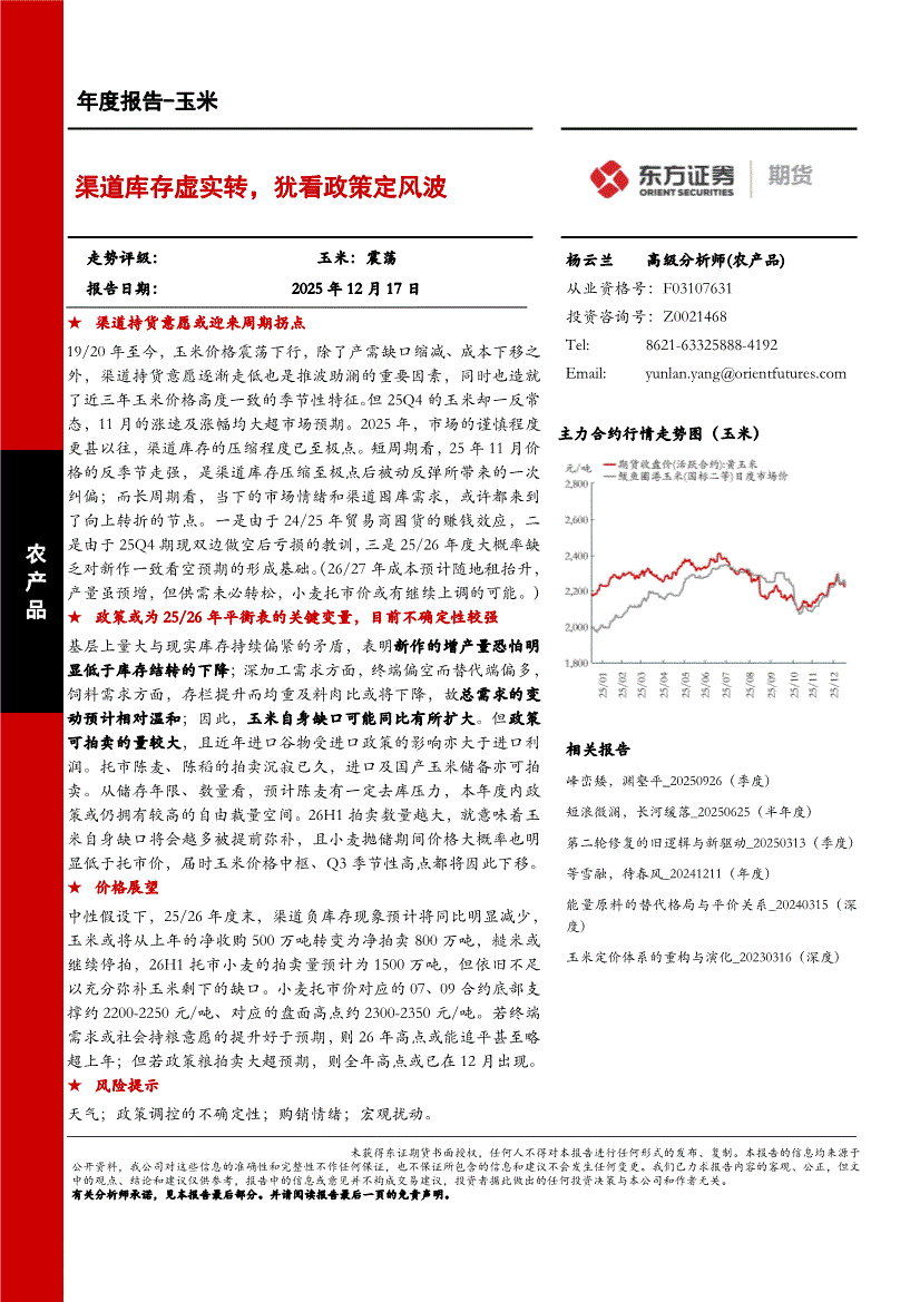 东证期货-玉米年度报告:渠道库存虚实转,犹看政策定风波-251217