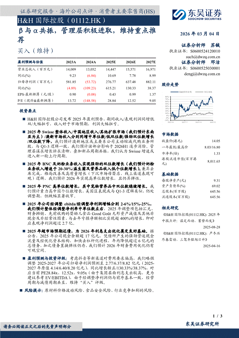 H&H国际控股:东吴证券-H&H国际控股-1112.HK-β与α共振,管理层积极进取,维持重点推荐-260304