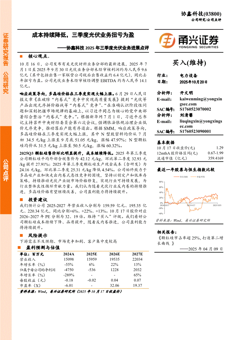 协鑫科技:甬兴证券-协鑫科技-3800.HK-2025年三季度光伏业务进展点评:成本持续降低,三季度光伏业务扭亏为盈-251020