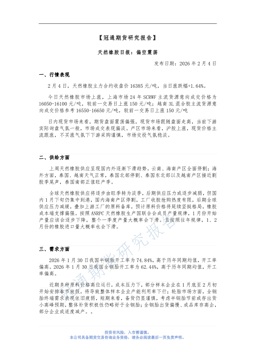 冠通期货-天然橡胶日报:偏空运行-260202