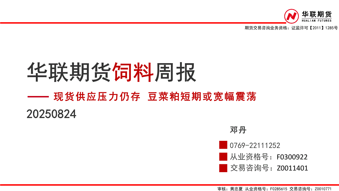 华联期货-饲料周报:现货供应压力仍存,豆菜粕短期或宽幅震荡-250824