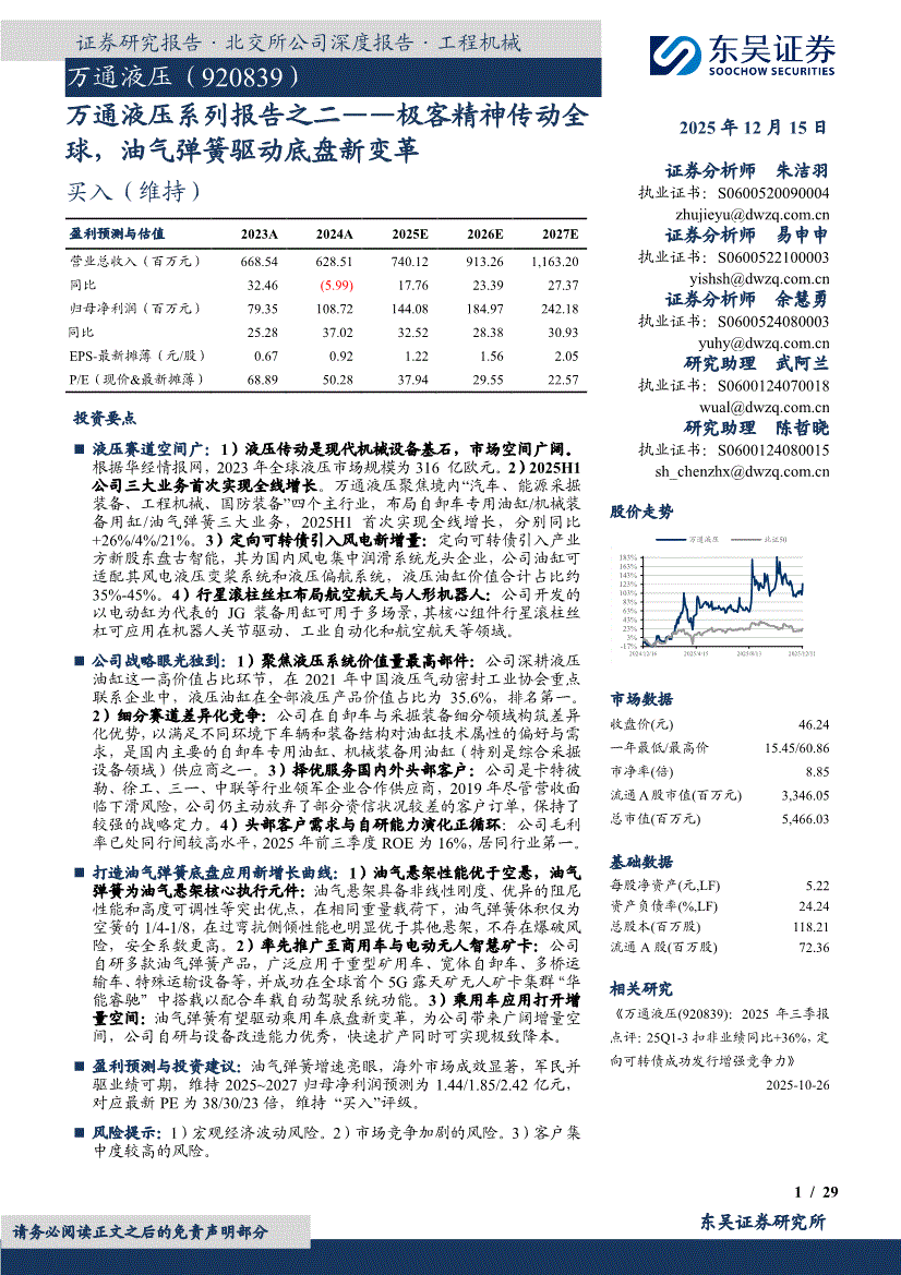 万通液压:东吴证券-万通液压-920839-系列报告之二:极客精神传动全球,油气弹簧驱动底盘新变革-251215