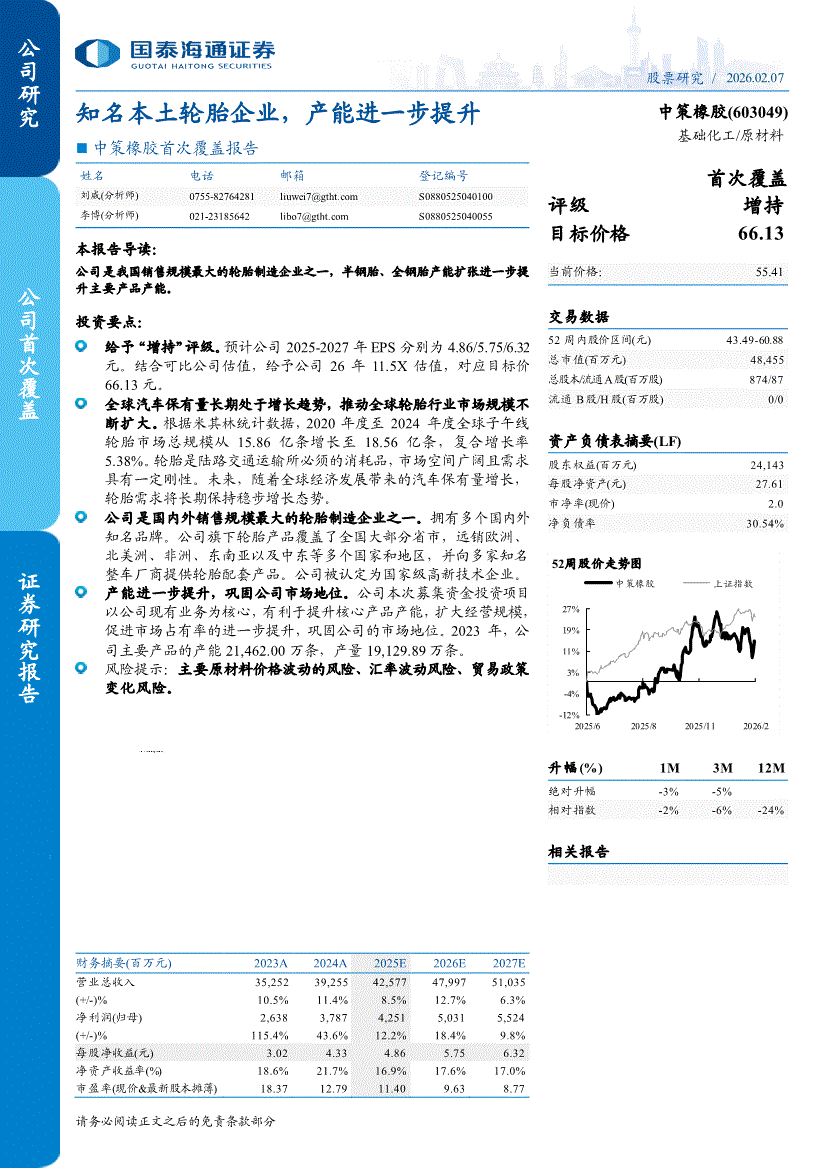 中策橡胶:国泰海通证券-中策橡胶-603049-首次覆盖报告:知名本土轮胎企业,产能进一步提升-260207
