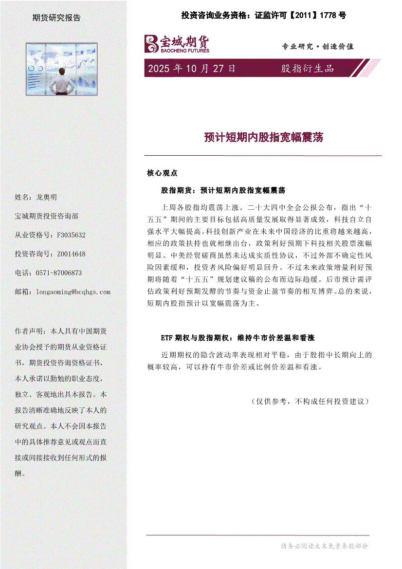 宝城期货-股指衍生品周报:短期内股指宽幅震荡为主-251020